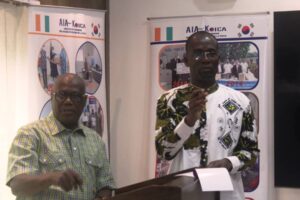 En effet, le cadre qui nous réunit ce jour est l’initiative de l’association des anciens stagiaires de la KOICA en abrégé AIA KOICA qui est née du désir de s’unir pour partager les différentes expériences apprises en Corée et de devenir acteur d’un changement positif pour notre pays, la Côte d’ivoire. L’AIAK compte plus de 500 membres et mène différentes activités à travers des conférences, des partages d’expériences et des actions sociales au profit des populations.