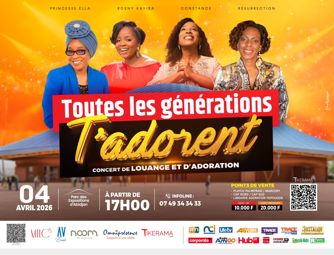 Baptisé « Toutes les générations l’adorent », ce concert réunira plusieurs figures de la musique chrétienne, notamment Princesse Ella, Rosny Kaera, Constance, ainsi que le groupe Résurrection.