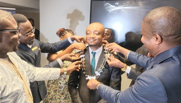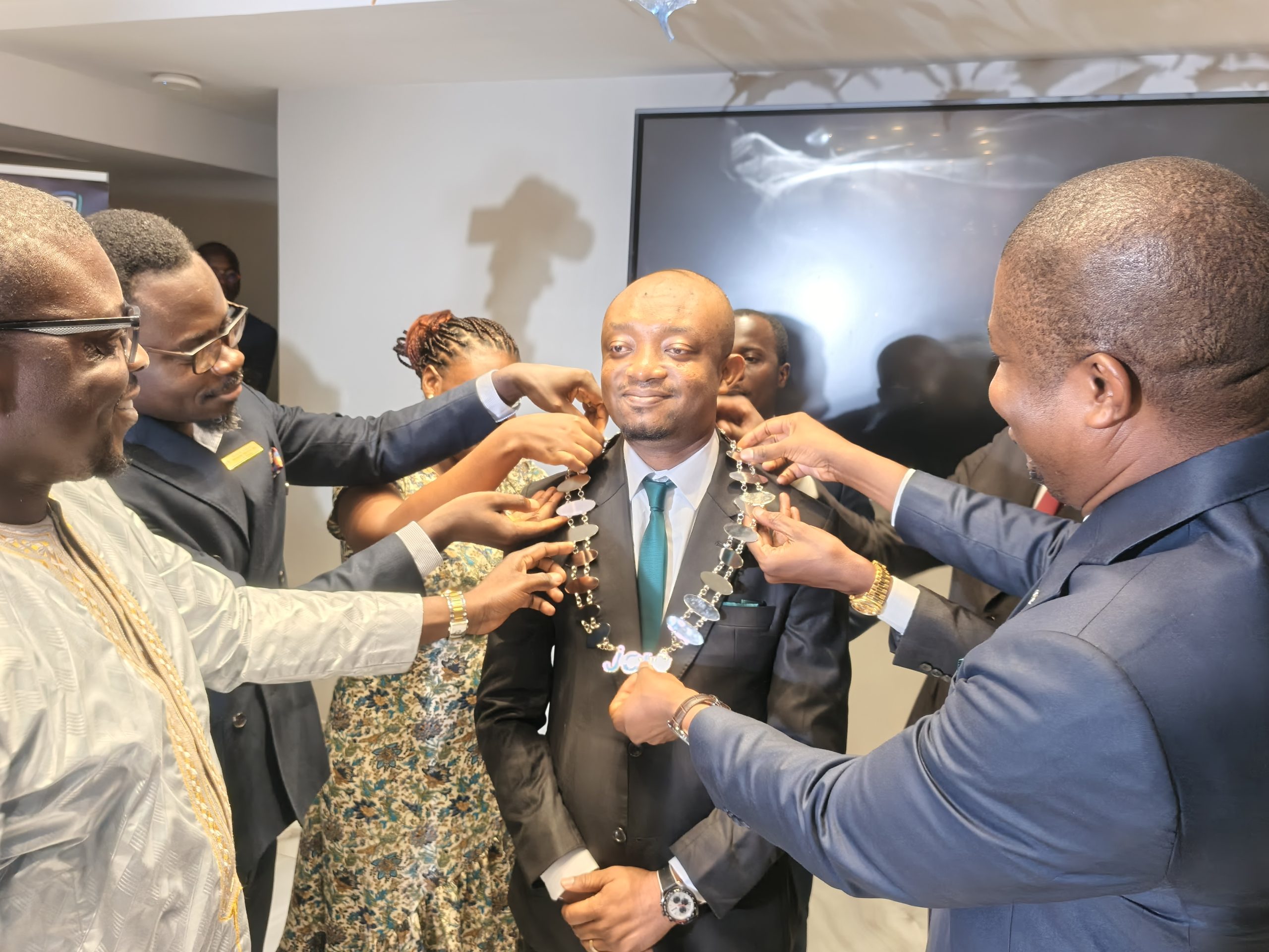 Moment fort de la soirée : l’investiture officielle de Konan Marius en qualité de président de JCI Cocody Harmonie pour 2026, sous la supervision du sénateur Koffi Germain.