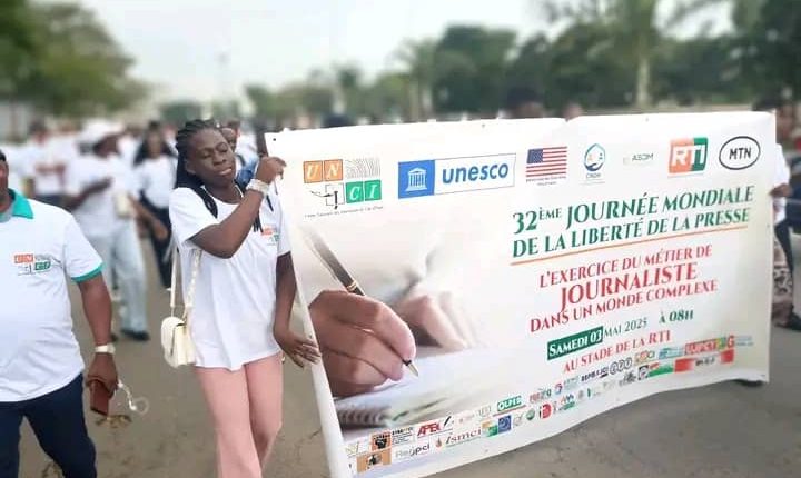 Samedi 3 mai 2025, à l’occasion de la 32ᵉ Journée mondiale de la liberté de la presse, plusieurs dizaines de journalistes ivoiriens ont battu le pavé, brandissant caméras, micros et stylos. Partis de la RTI, ils ont sillonné le Boulevard de France, l’Université Félix Houphouët-Boigny et la rue du Lycée Mermoz, transformant cette marche symbolique en un message fort en faveur d’un journalisme libre, responsable et respecté.