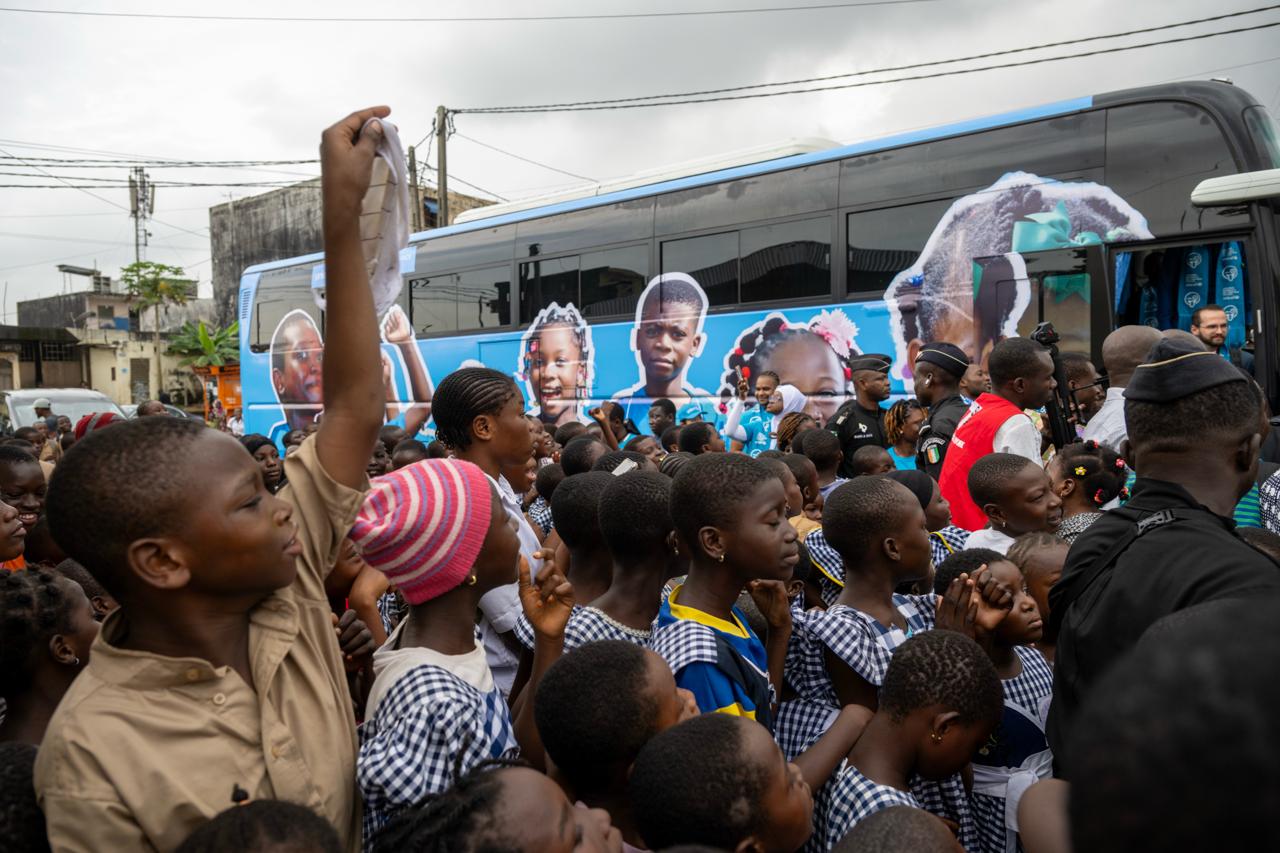 Journée mondiale de l’enfance : le Bus Bleu de l’UNICEF éclaire Abidjan et porte la voix des enfants