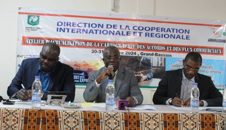 Les 30 et 31 octobre 2024, s’est tenu à Grand-Bassam, un important atelier  dans la salle « Moossou », de l’Hôtel REGENT, consacré à l’Actualisation de la Cartographie des Accords et Flux Commerciaux de la Côte d’Ivoire, une plateforme numérique d’information commerciale. Cet événement, organisé par la Direction de la Coopération Internationale et Régionale du Ministère du Commerce et de l’Industrie, s’inscrit dans le cadre des efforts du gouvernement pour dynamiser le commerce extérieur du pays.