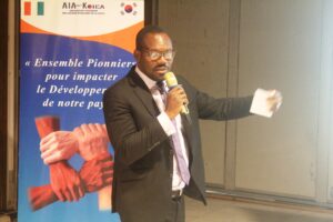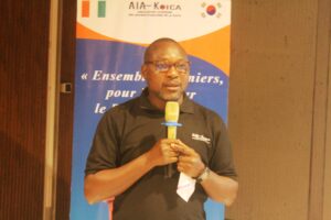 « En choisissant de réunir les membres de l’Association, tous Experts dans leur domaine respectif, nous avons opté pour une approche de complémentarité et de synergie entre toutes les expertises engagées pour le développement de notre pays et des relations de coopérations continuent avec la Corée du Sud. Chers amis de l’AIAK, Chers participants, comme vous le savez, notre financement vient tout simplement de l’aide qui nous vient du peuple Coréen, à travers la KOICA, qui nous permet la réalisation de nos plans d’action annuelle. Il est donc important de continuer à renforcer cette coopération à travers des ateliers, séminaires tels que celui qui nous réunis ici aujourd’hui et mener des actions sur le terrain pour nous faire connaître et faire connaître la Corée du Sud. Les Enseignements disposés au cours de cette formation, je veux dire de ce partage d’expérience, et du panel ajouté à ceux que nous avons reçus devraient nous permettre d’avoir une vision plus élevée de l’impact de nos actions sur les communautés que nous aidons et de nos réalisations de développement à travers le Pays.