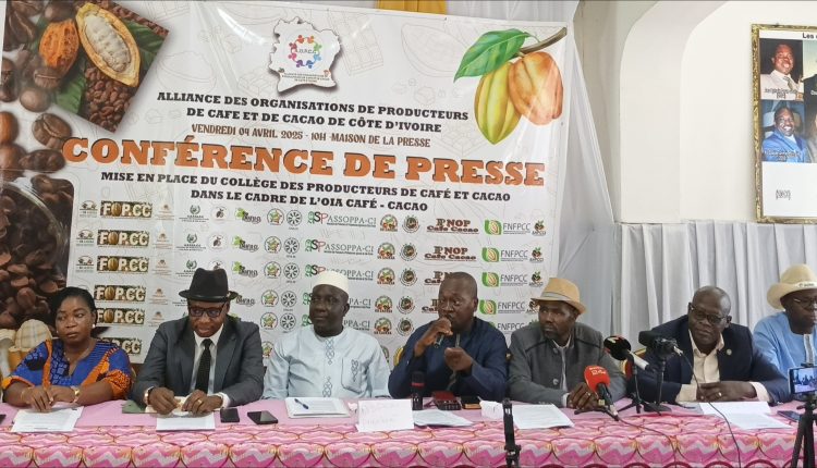 Ce matin du 4 Avril 2025 à Abidjan, l’Alliance des Organisations de Producteurs de Café et de Cacao de Côte d’Ivoire a organisé une conférence de presse afin d’évoquer la mise en place du Collège des Producteurs de Café-Cacao. Cet événement a réuni plusieurs acteurs majeurs de la filière, désireux d’unir leurs voix pour une meilleure représentation des intérêts des producteurs.