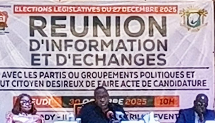 Abidjan, le 30 octobre 2025 – La Commission Électorale Indépendante (CEI) a convié ce jeudi les partis politiques, groupements et citoyens désireux de se porter candidats aux élections législatives prévues le 27 décembre 2025, à une importante réunion d’information et d’échanges à l’Espace Latrille Events, à Cocody.