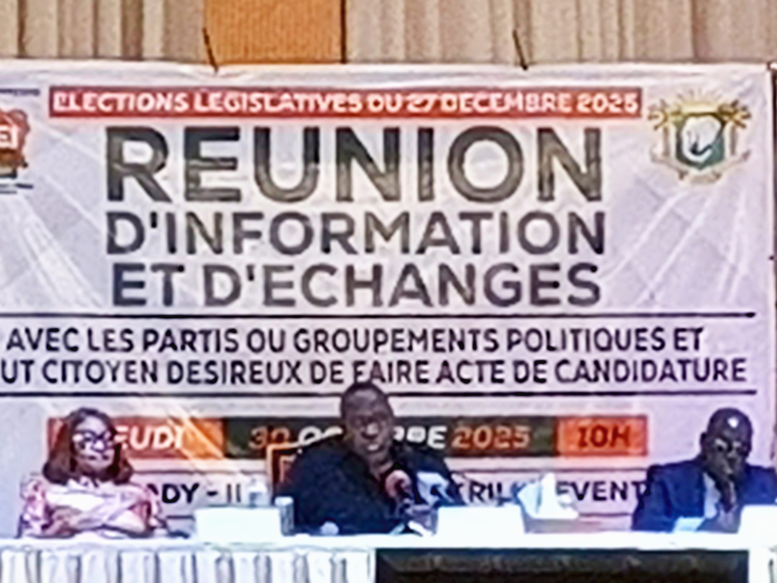 Abidjan, le 30 octobre 2025 – La Commission Électorale Indépendante (CEI) a convié ce jeudi les partis politiques, groupements et citoyens désireux de se porter candidats aux élections législatives prévues le 27 décembre 2025, à une importante réunion d’information et d’échanges à l’Espace Latrille Events, à Cocody.