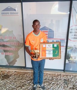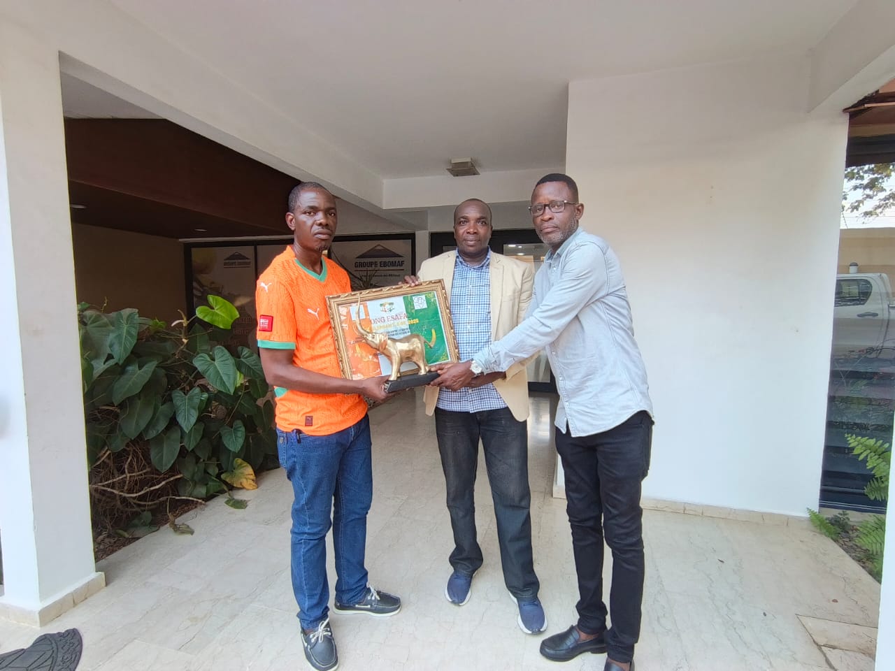 La remise officielle du trophée et du diplôme du Prix sectoriel Éléphant d’Or s’est tenue le mercredi 31 décembre 2025, au siège du Groupe EBOMAF à Abidjan. La distinction a été remise par M. Coulibaly Arouna, président du Réseau des Communicateurs pour les Valeurs de Paix et de Bonne Gouvernance en Afrique, et M. Armel Djédjé, président de l’ONG ESAFA. Le prix a été réceptionné par M. Sylvain Debailly, responsable de la communication du Groupe EBOMAF en Côte d’Ivoire qui s’est réjoui de cette distinction.