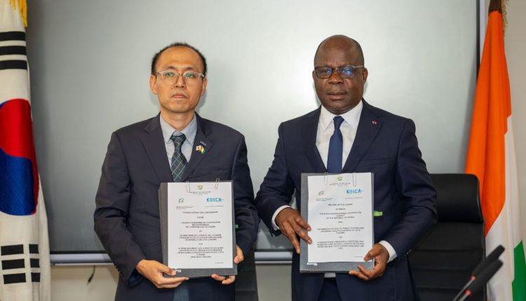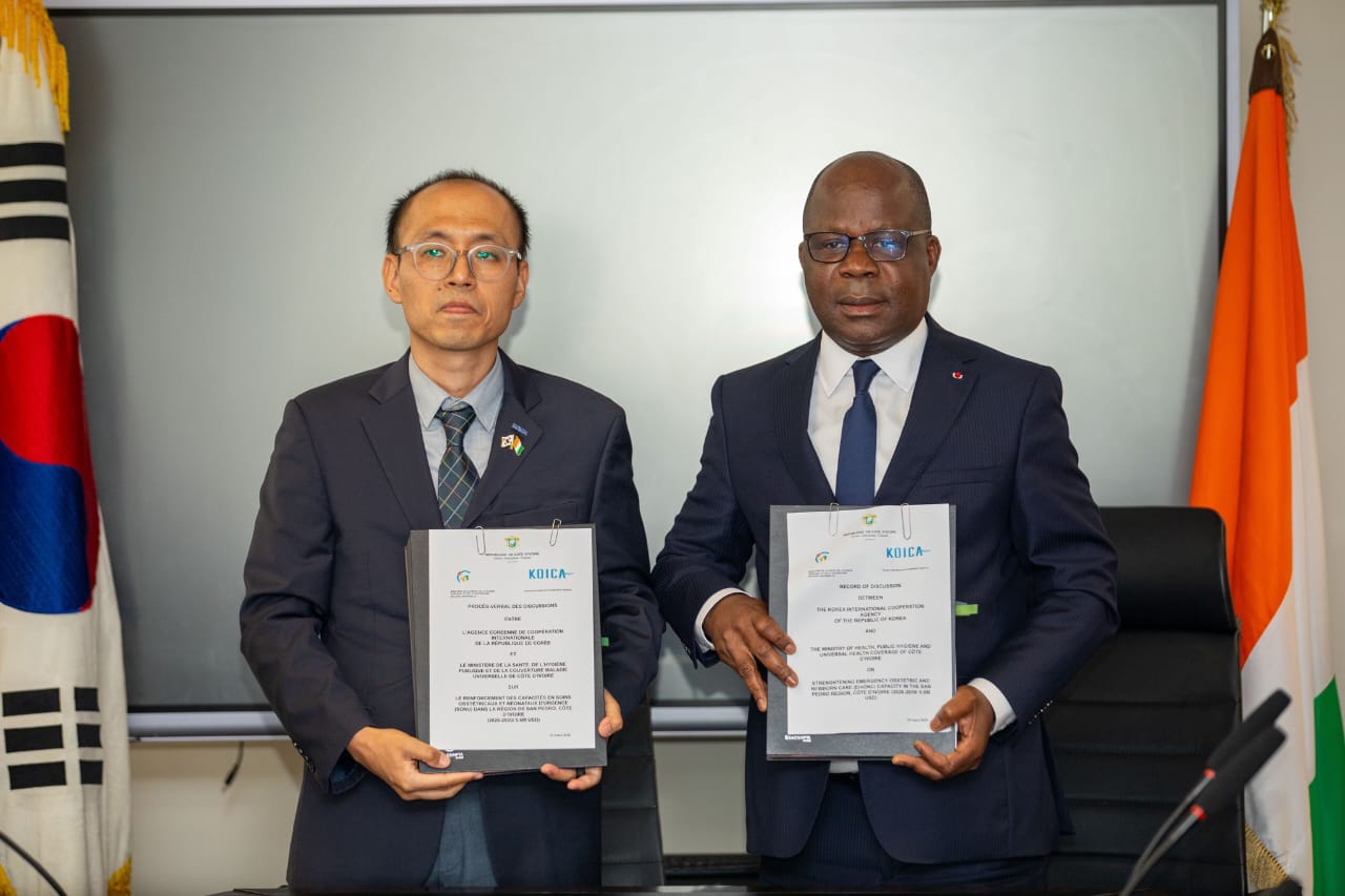 Cet accord a été paraphé par M. Pierre N’Gou Dimba, Ministre de la Santé, de l’Hygiène Publique et de la Couverture Maladie Universelle, et M. KIM Sangjun, Directeur Pays de la KOICA en Côte d’Ivoire. Le projet, doté d’un financement non remboursable de la République de Corée s’élevant à 5 600 000 USD (environ 3,4 milliards de FCFA), sera déployé sur la période 2026-2030.